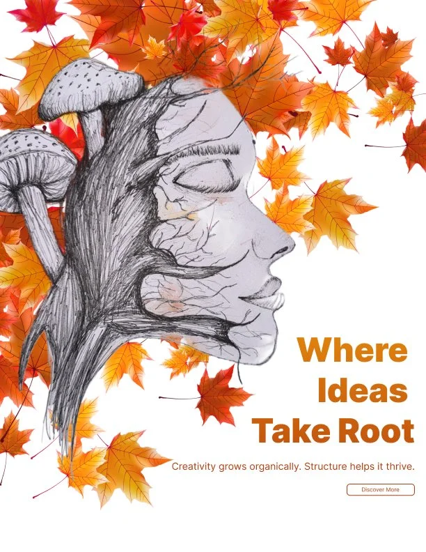 “Where Ideas Take Root” is a conceptual poster exploring the relationship between creativity and structure. The piece visualizes creativity as an organic ecosystem, where ideas grow and evolve in unexpected ways. While creativity is often seen as spontaneous or chaotic, this project highlights the importance of an underlying structure that supports and sustains the creative process.